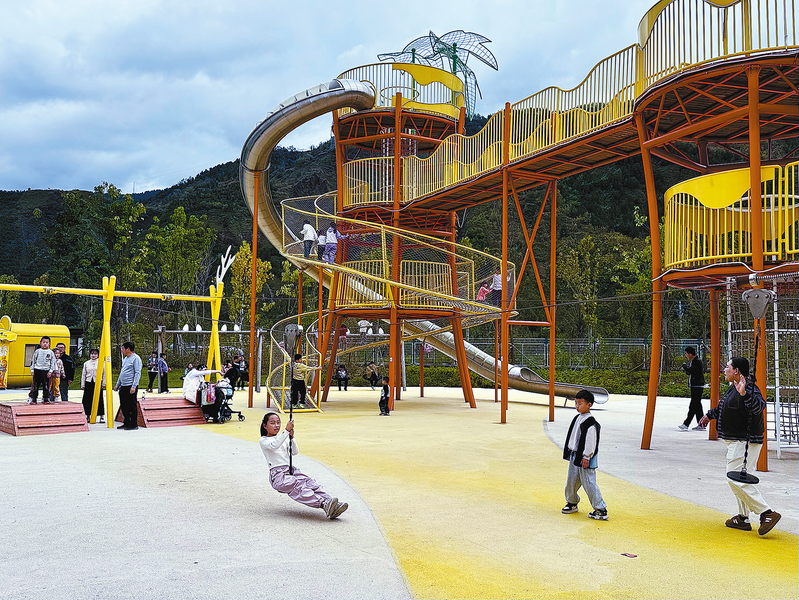 國(guó)慶假期后,丹鳳縣棣花鎮(zhèn)葡萄星球游樂(lè)場(chǎng)延續(xù)“免門(mén)票”福利,作為丹鳳本地特色文旅IP,此項(xiàng)舉措激活本地游市場(chǎng),成為家庭周末出行的熱門(mén)選擇。圖為十月十九日,許多家長(zhǎng)帶著孩子在游樂(lè)場(chǎng)里玩耍。(本報(bào)記者 謝非 攝)