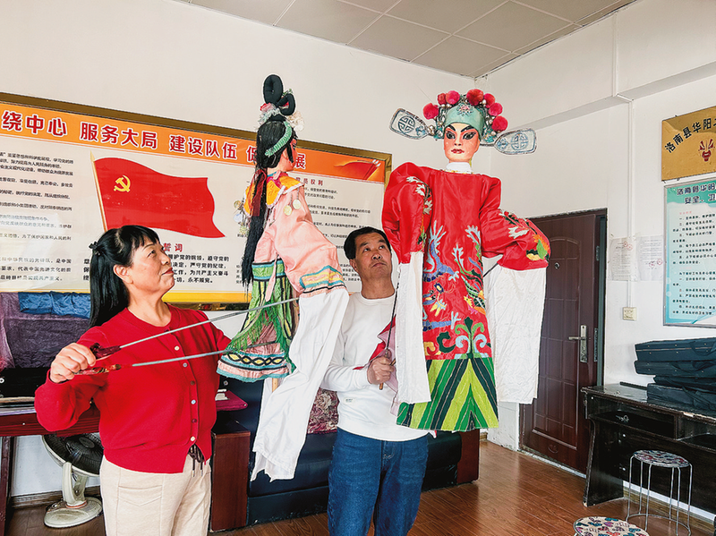 10月15日一早,洛南縣文化館的一間排練室里,板胡聲劃破寂靜,鼓點急促地響起,兩名藝人各自手持1米高的木偶,踱步入場,隨著唱腔的變換,她們手中的小人靈動如生,一招一式皆具韻味,仿佛被賦予了鮮活的生命。